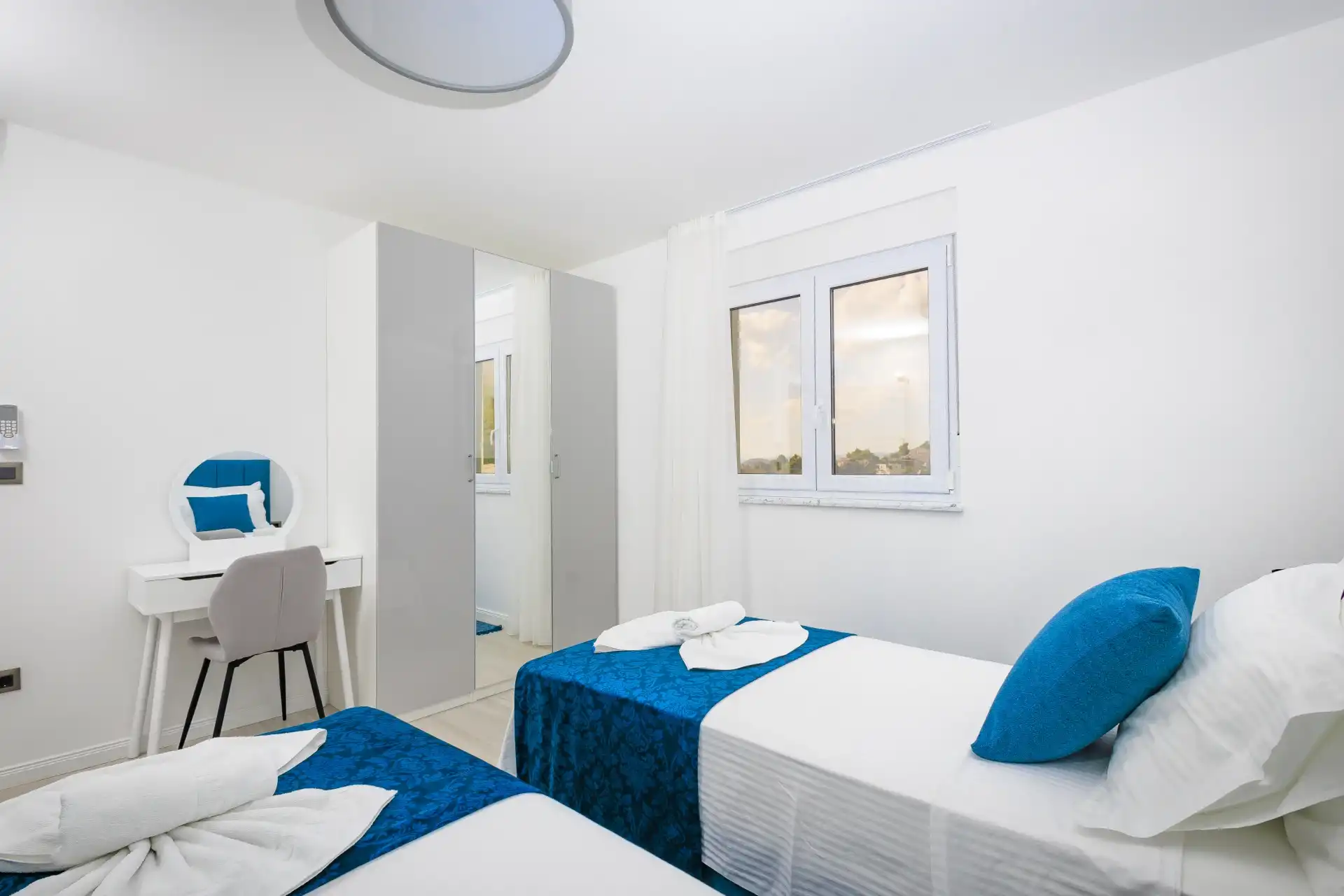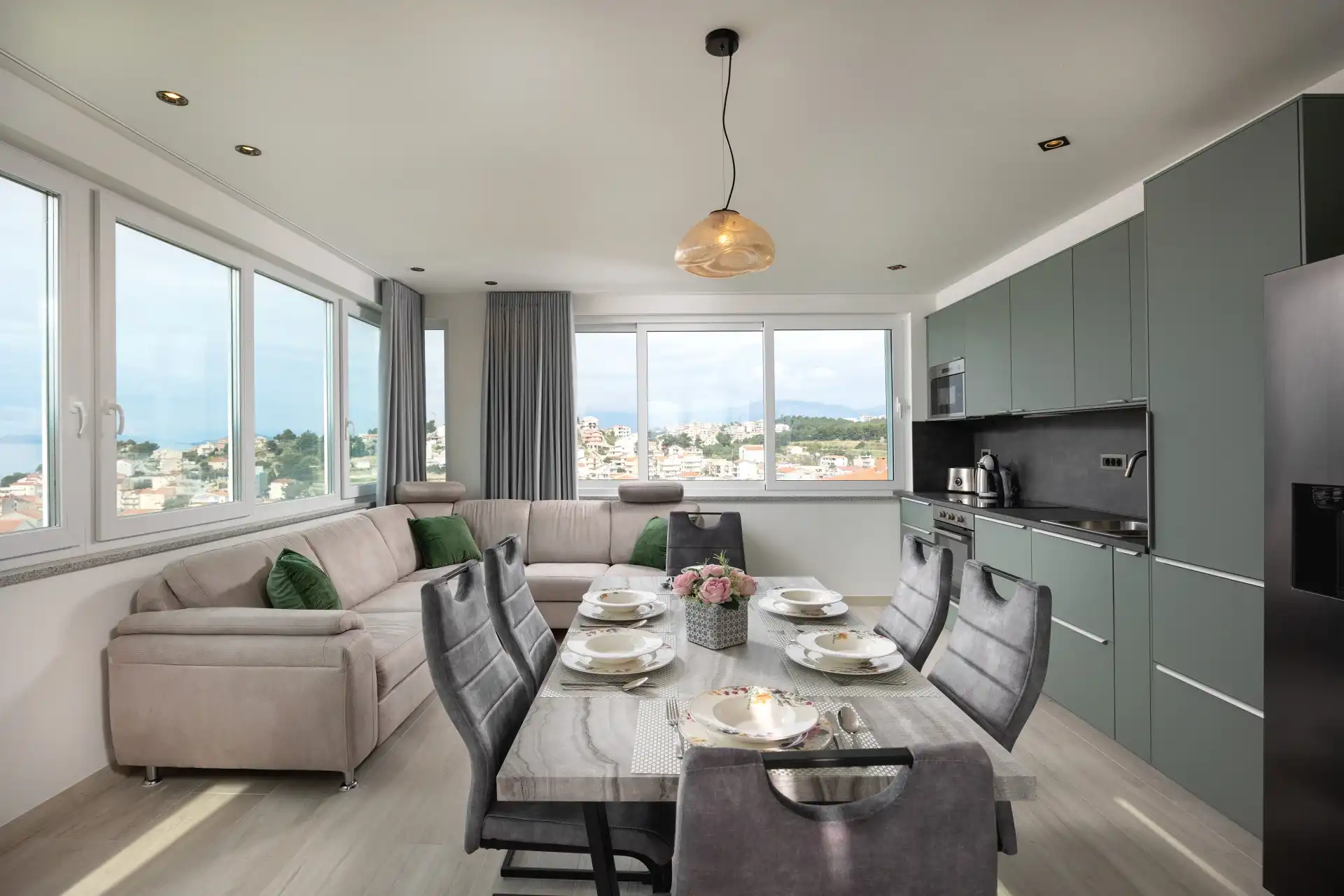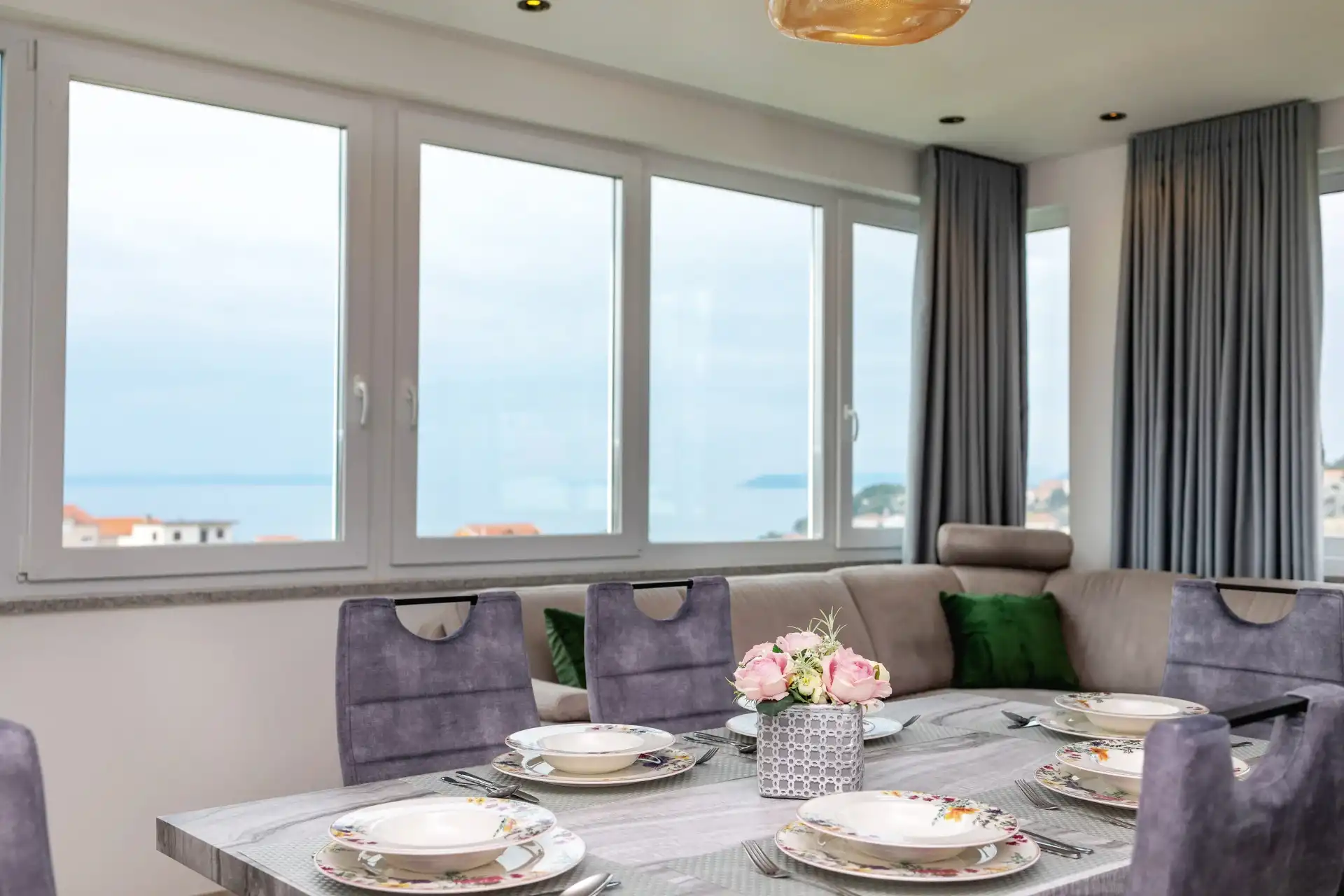 What makes this Penthouse special is a beautiful private terrace for relaxation (sun loungers) and plenty of space for gathering and socializing (table and chairs) with an unobstructed beautiful view of the Adriatic Sea with nearby islands.