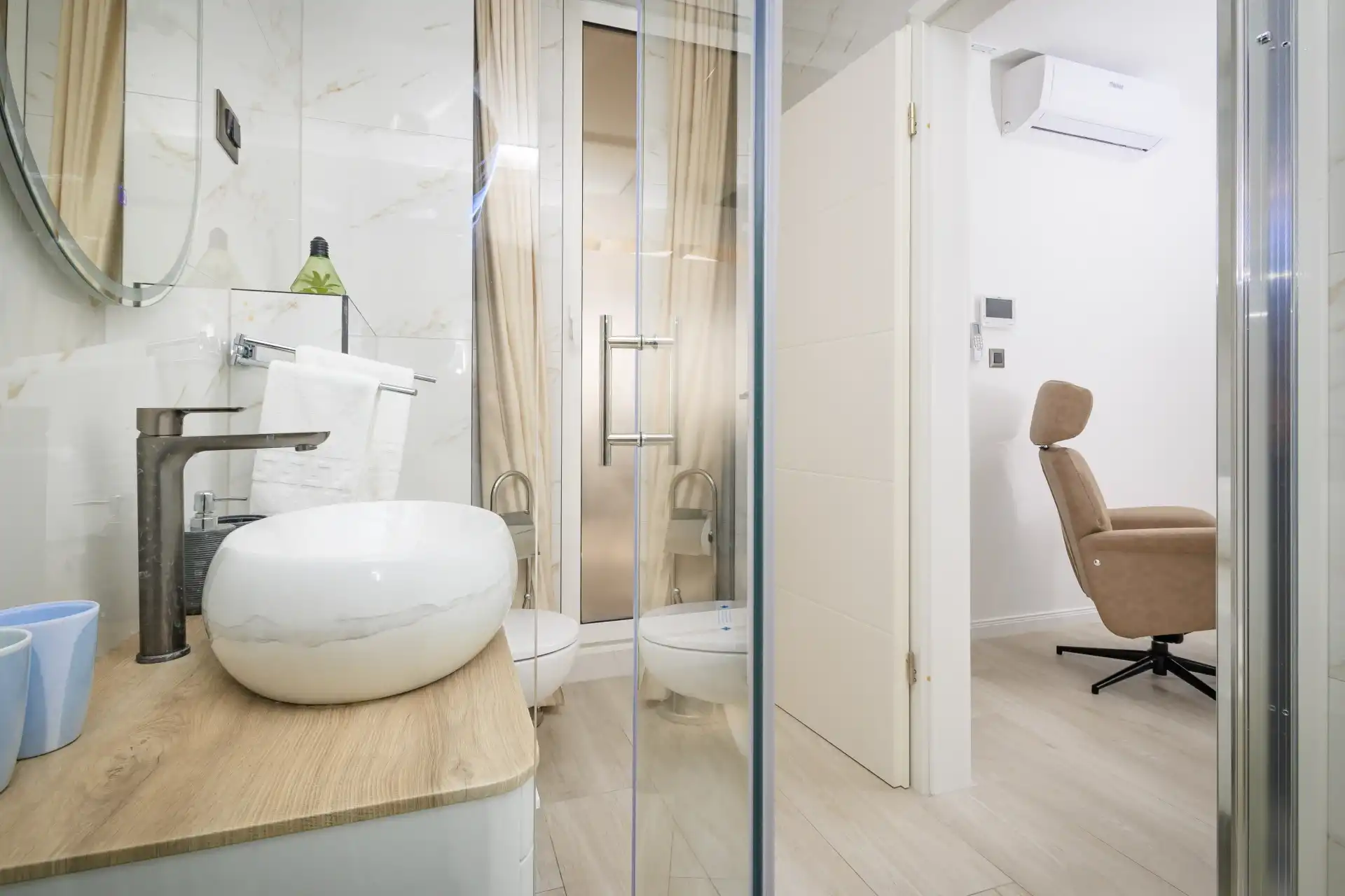 This magnificent Penthouse contains 3 spacious and cozy bedrooms, and 3 fully equipped bathrooms with modernly designed walk-in shower, and one toilet in each.
